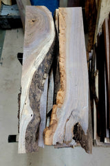 Included in this box are six single live edge walnut slabs, surfaced on both sides. Each slab varies in size (listed below). Some boards may feature sapwood, cracks, voids, or rot—ideal for epoxy and DIY projects.